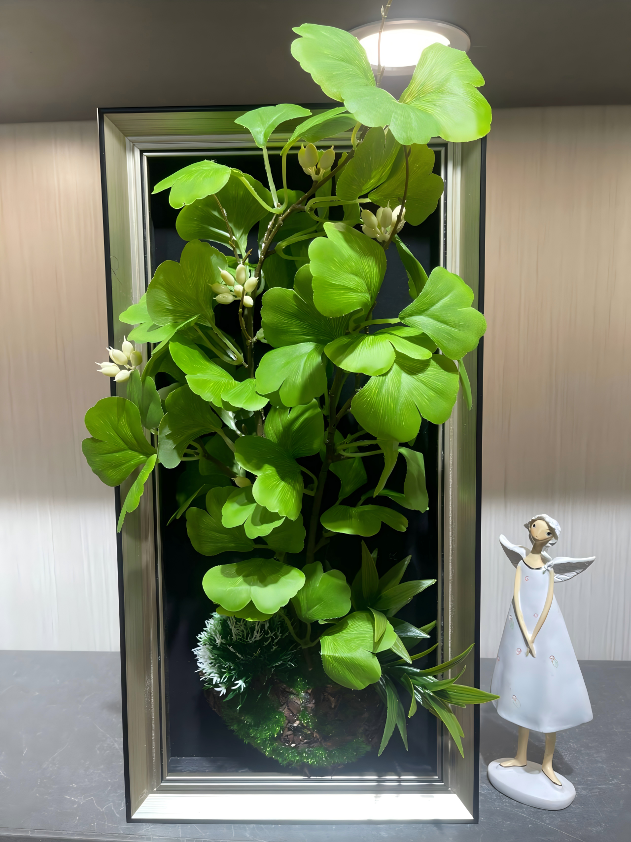 Artificial Ginkgo Leaf Arrangement in Sleek Silver Framed Display(Size:9 in*18 in)