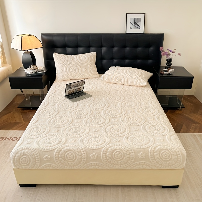 Elegant Single Velvet Fitted Sheet , Soft and Breathable, Floral Pattern for Bedroom Décor
