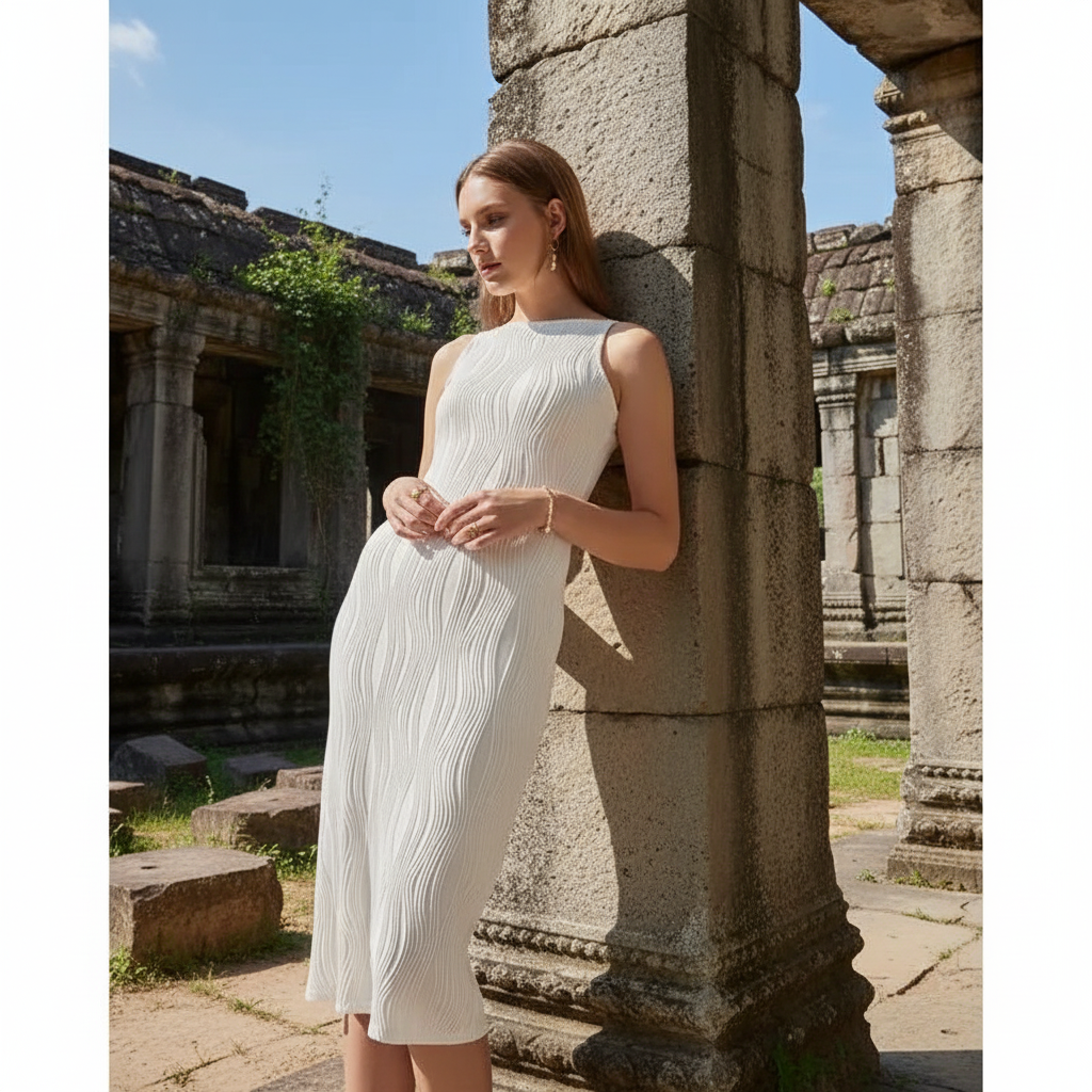 Elegant Water Ripple Textured Cami Dress Flowy & Feminine
