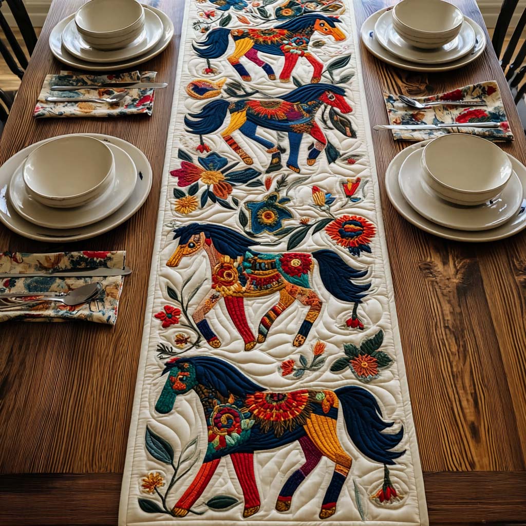 Folk Horse Garden Quilted Table Runner NCU0DQQ0176