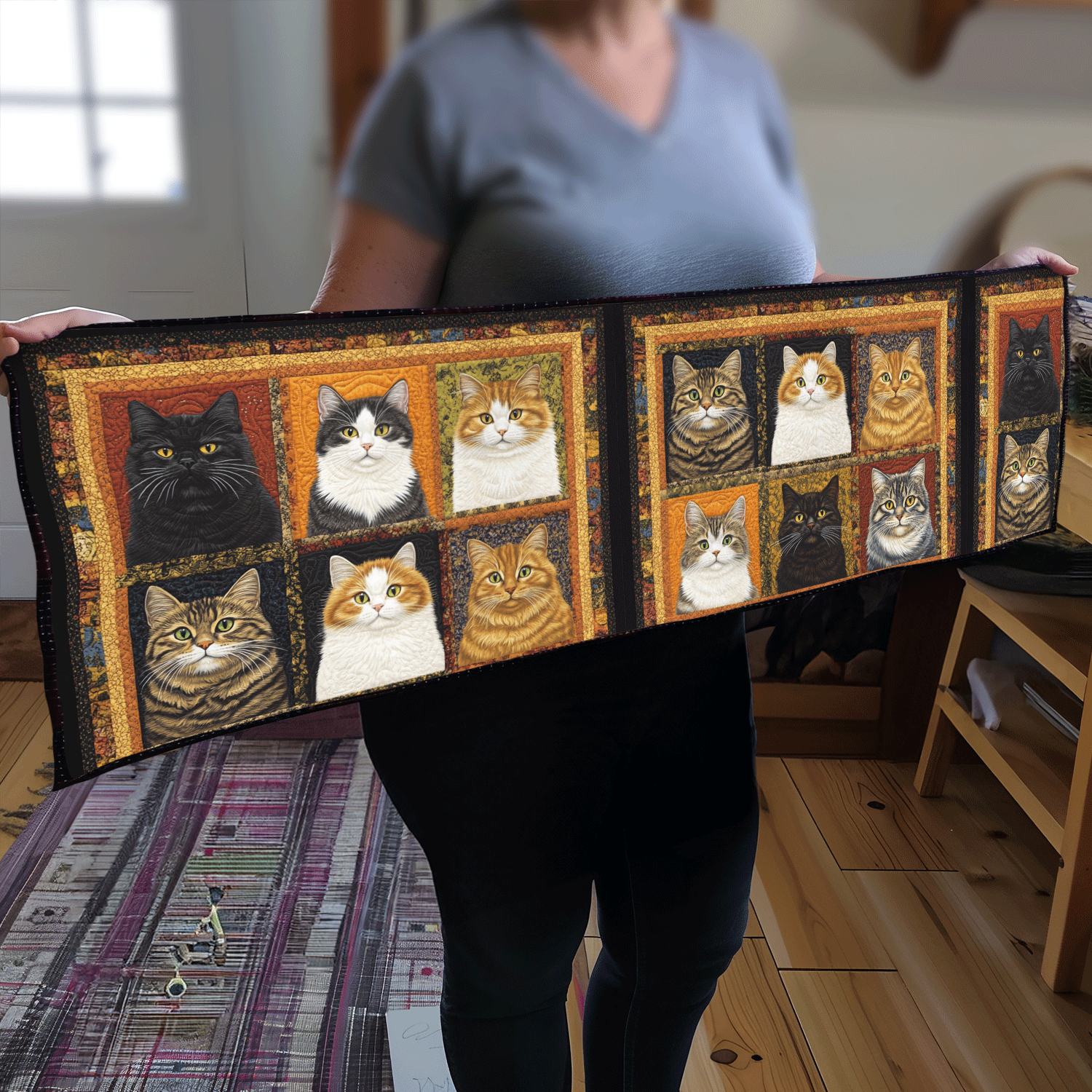 Funny Cat Patchwork Quilted Table Runner NCU0PD808