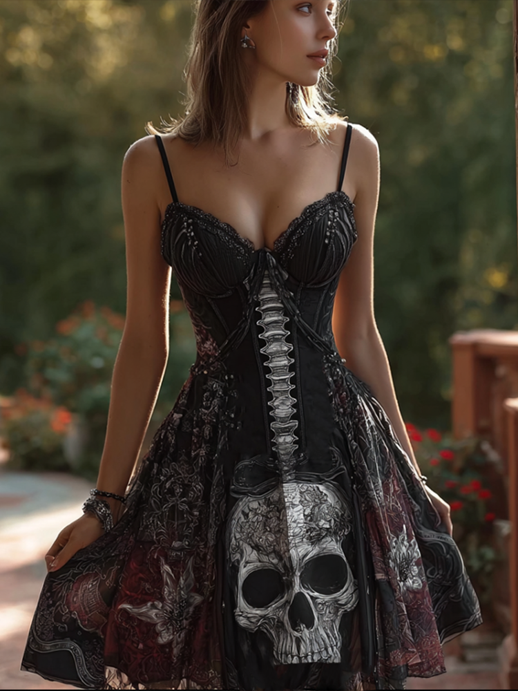 Halloween Skeleton Skeleton Pattern Women's Cotton And Linen Sleeveless Dress