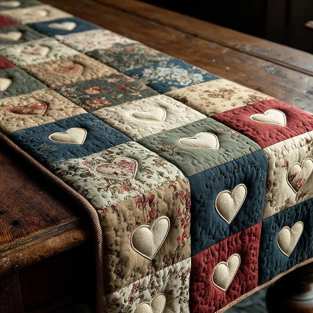 Heritage Hearts Quilted Table Runner NCU0LDH318