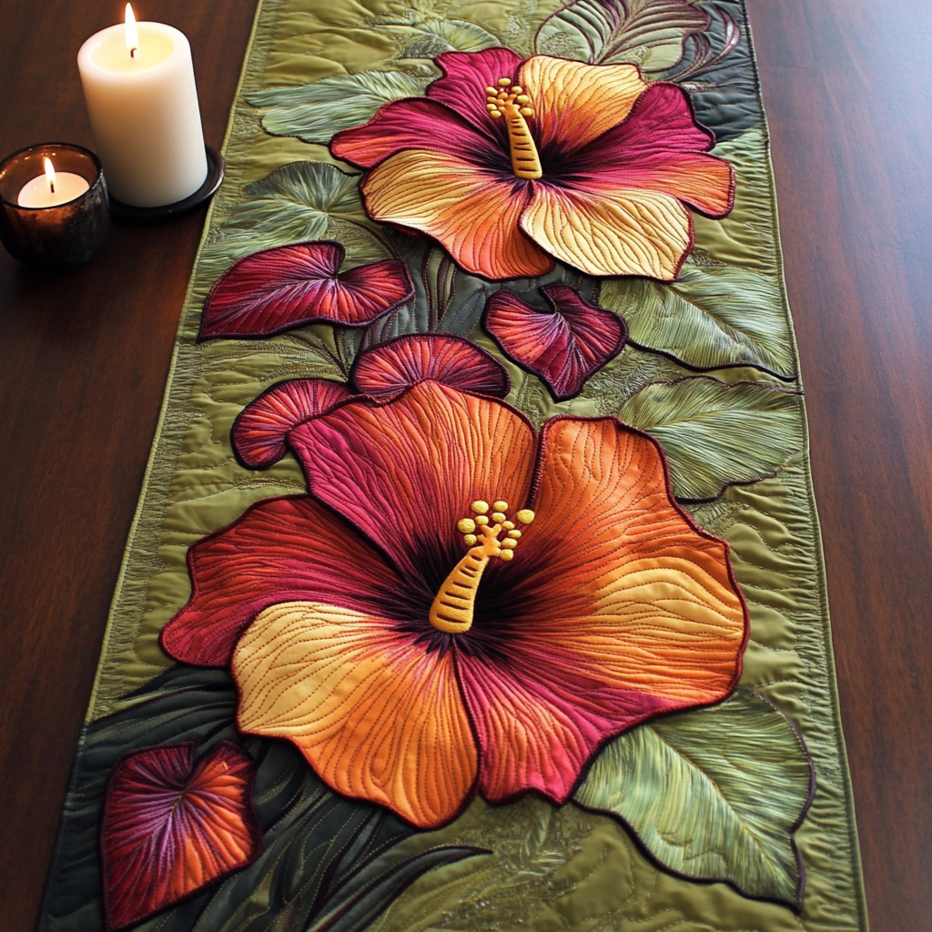 Hibiscus Blossom Quilted Table Runner NCU0NVH352