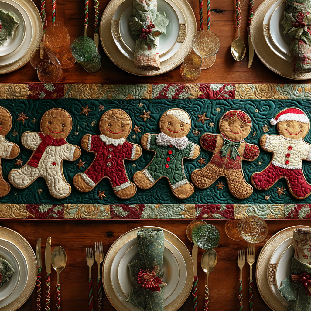Holiday Gingerbread Man Quilted Table Runner NCU0HNH681