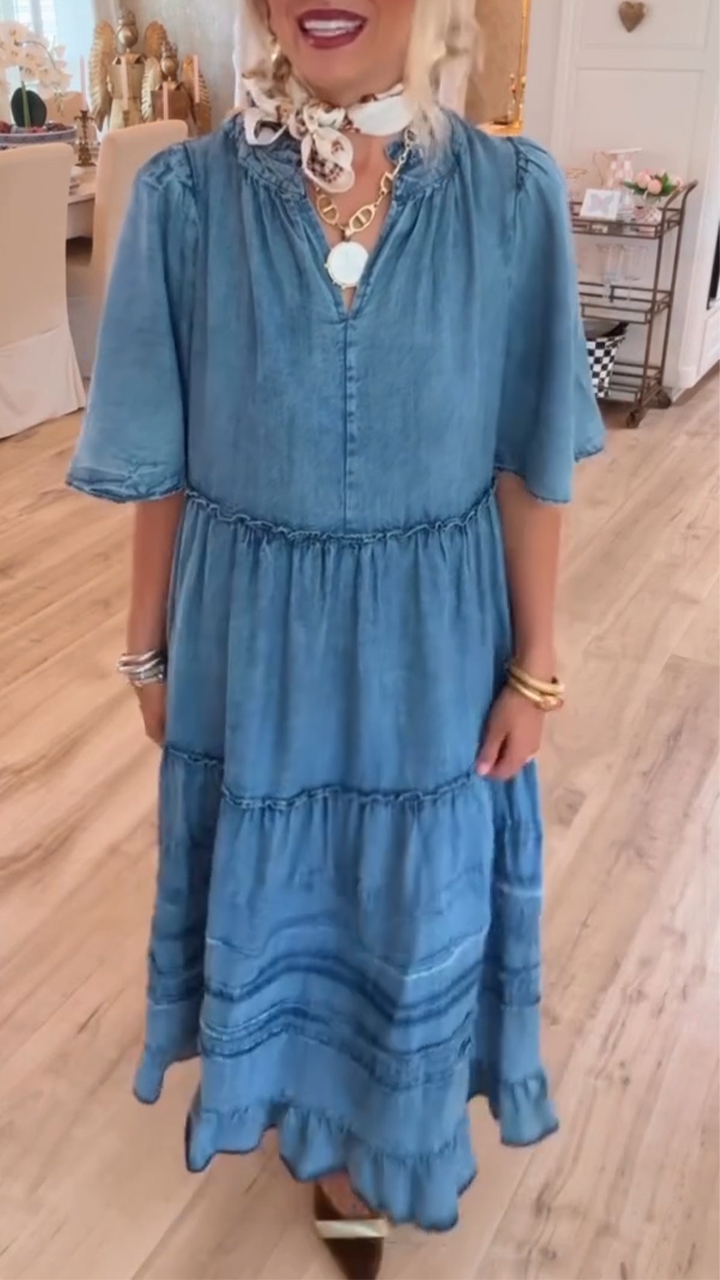 Ladies V-neck Patchwork Casual Dress