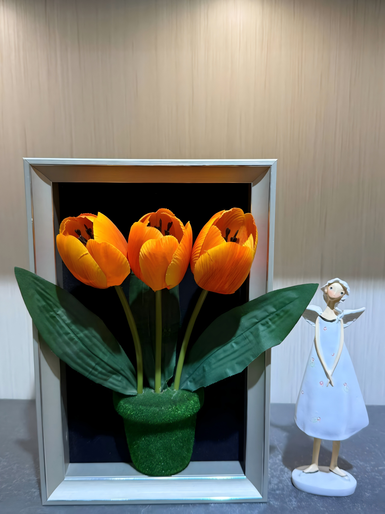 Lifelike & Eco-Friendly Artificial Orange Tulip Framed Botanical Display 🌷(Size 7.8*11.8 in)