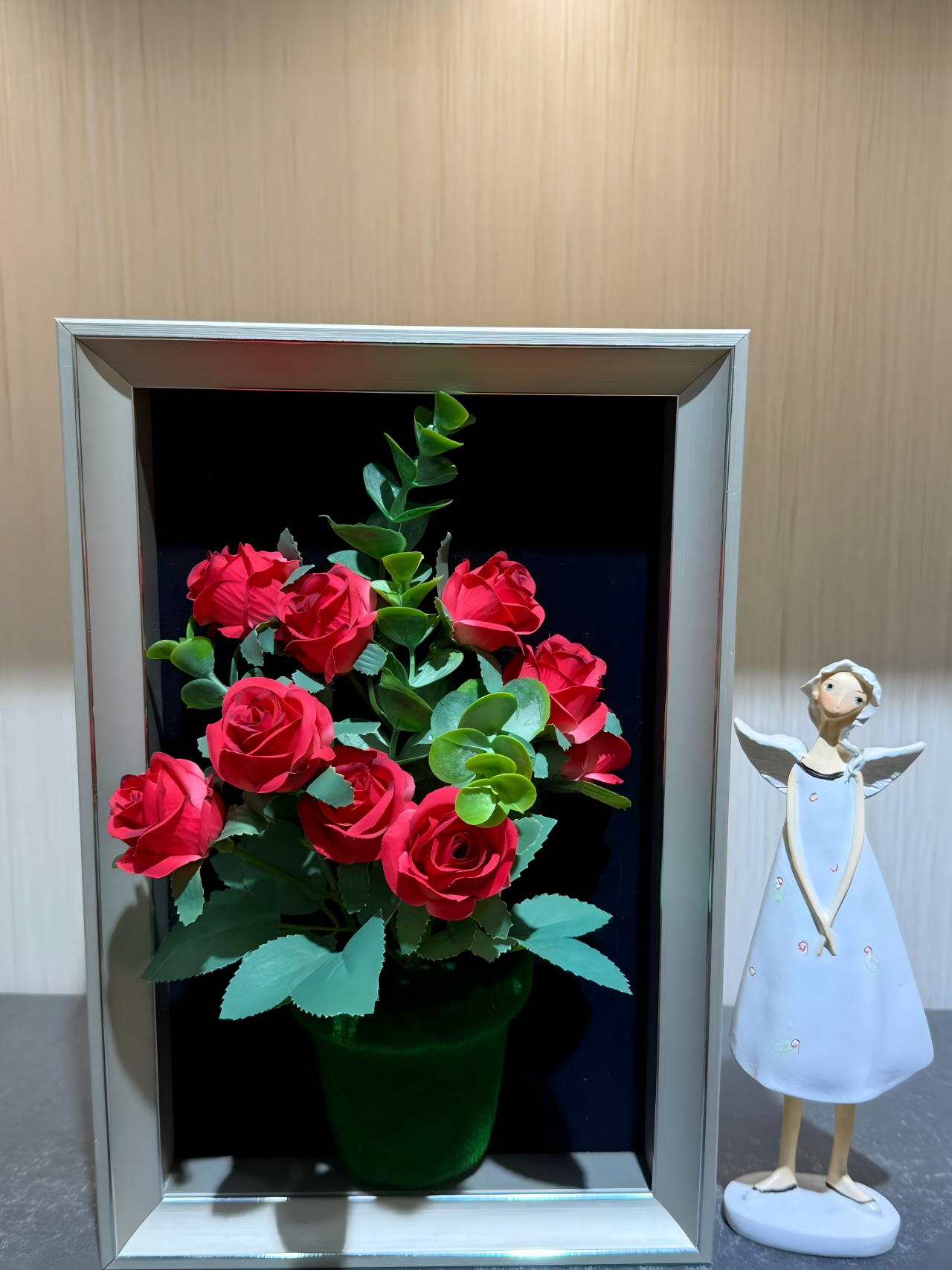 Lifelike & Eco-Friendly Artificial Red Rose Framed Botanical Display ❤️(Size 7.8*11.8 in)