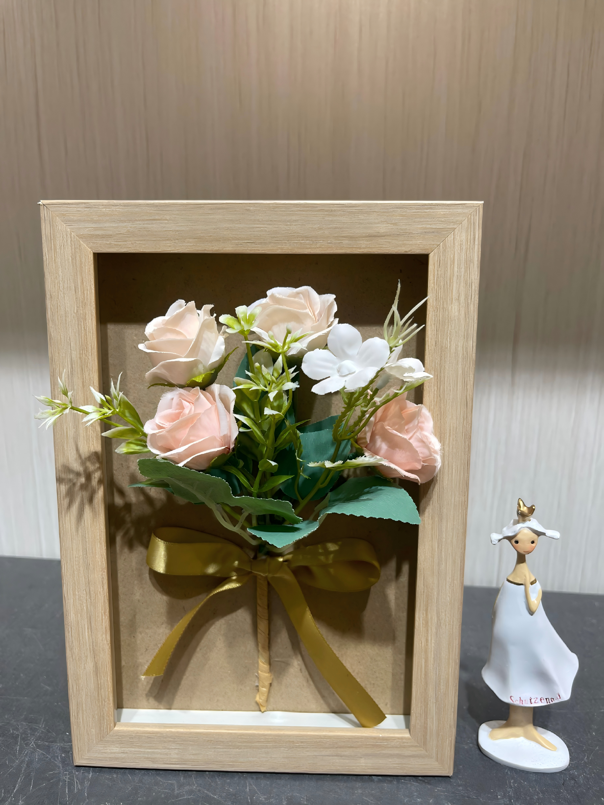 Light Pink Rose Realistic Framed Bouquet (6.7*9.6 in) - Desktop Decor Ornament