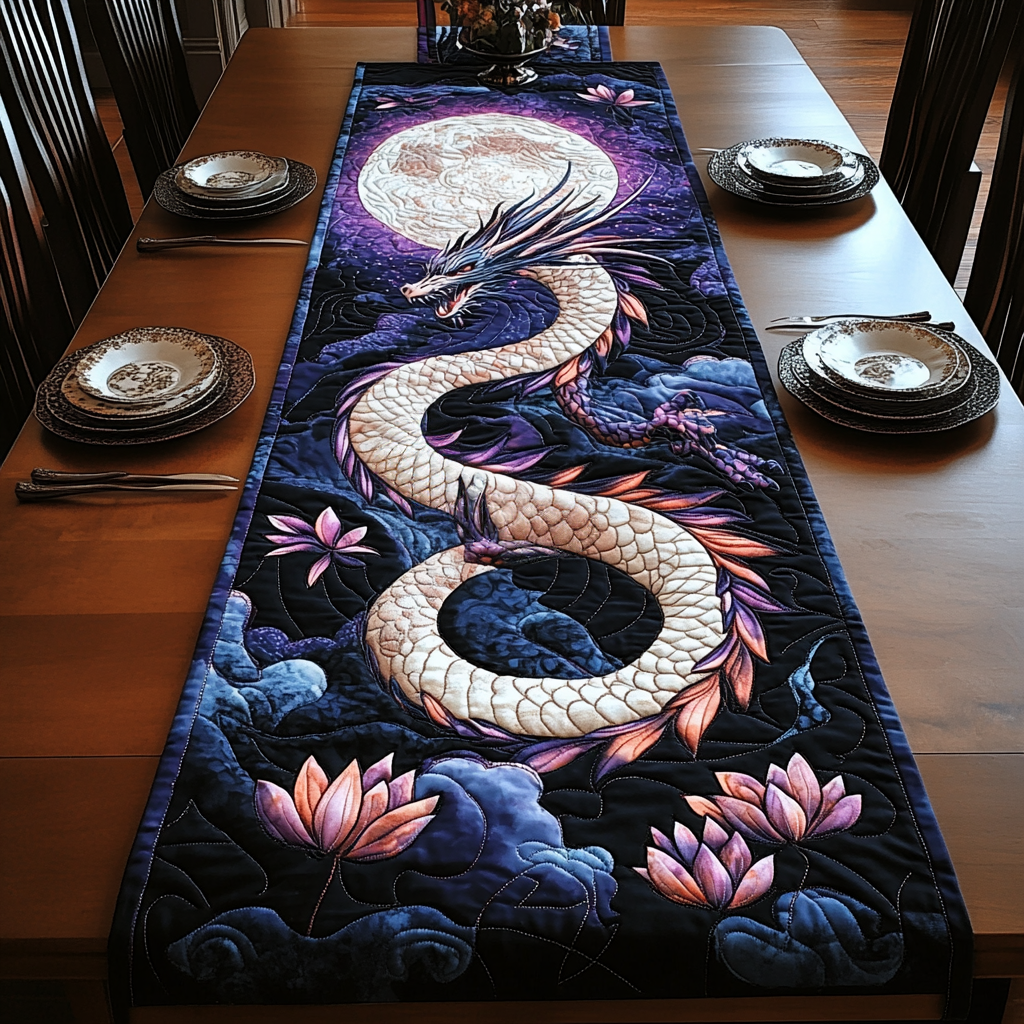 Lotus Dragon Quilted Table Runner NCU0DV926