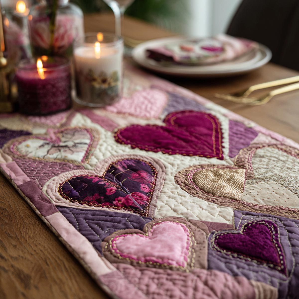 Loving Hearts Quilted Table Runner NCU0DV1812