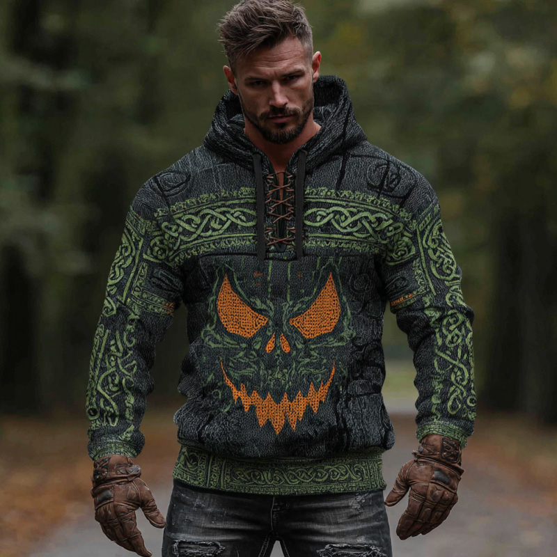 Men's Vintage Viking Halloween Ghost Face Embroidered Hoodie