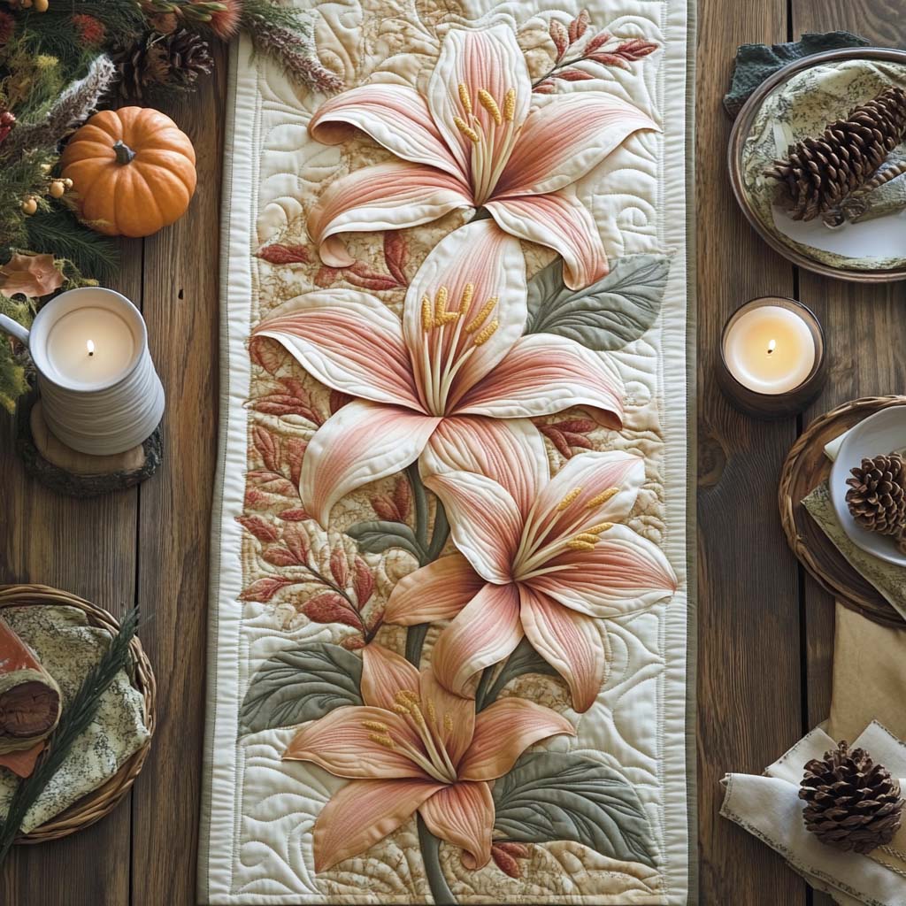Peach Lilies Quilted Table Runner NCU0NXD283