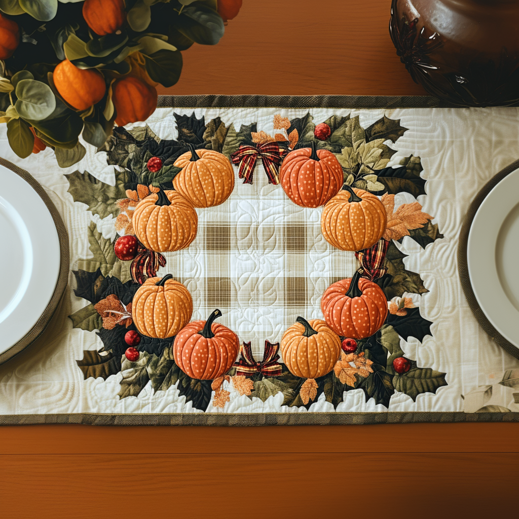 Pumpkin Wreath Charm Quilted Table Runner NCU0NNT1031