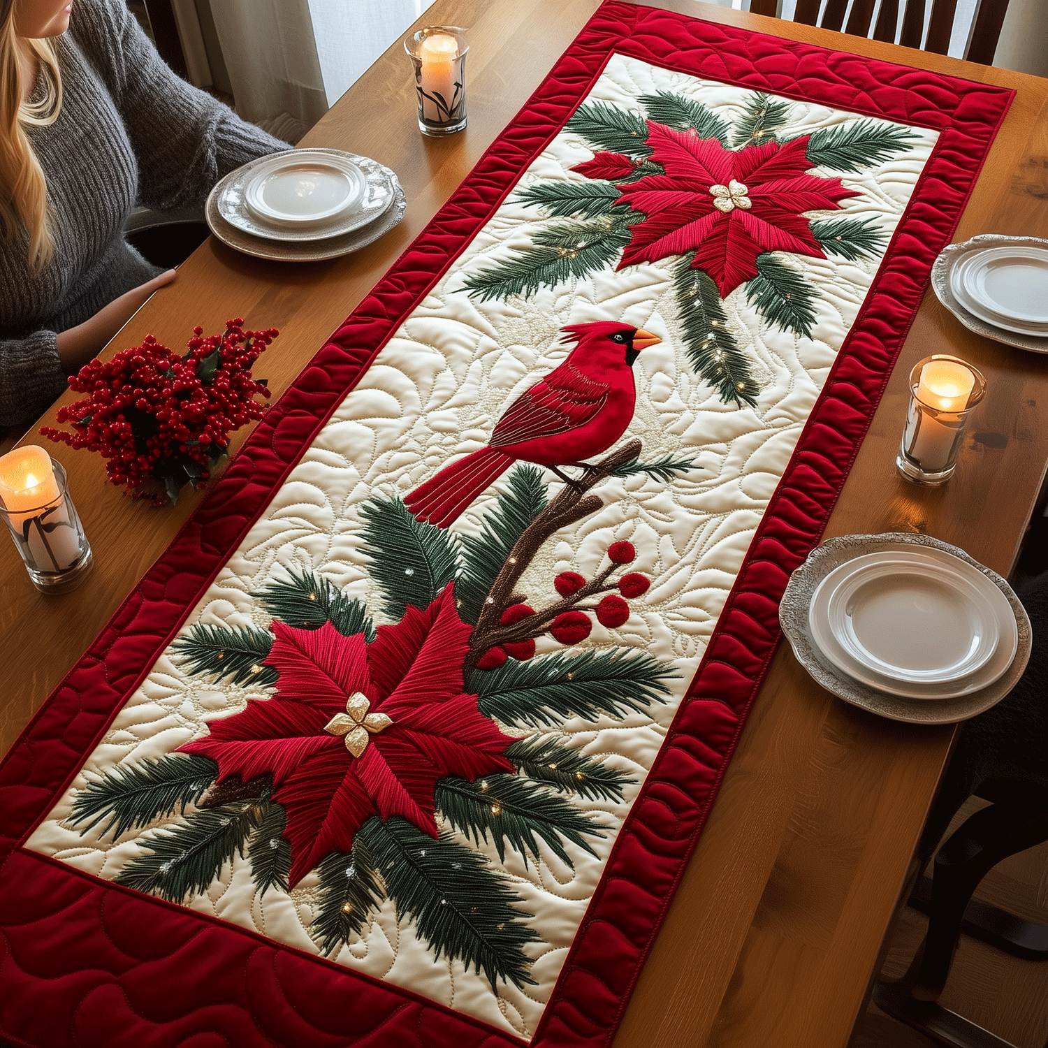 Red Beauties Quilted Table Runner NCU0TH1913
