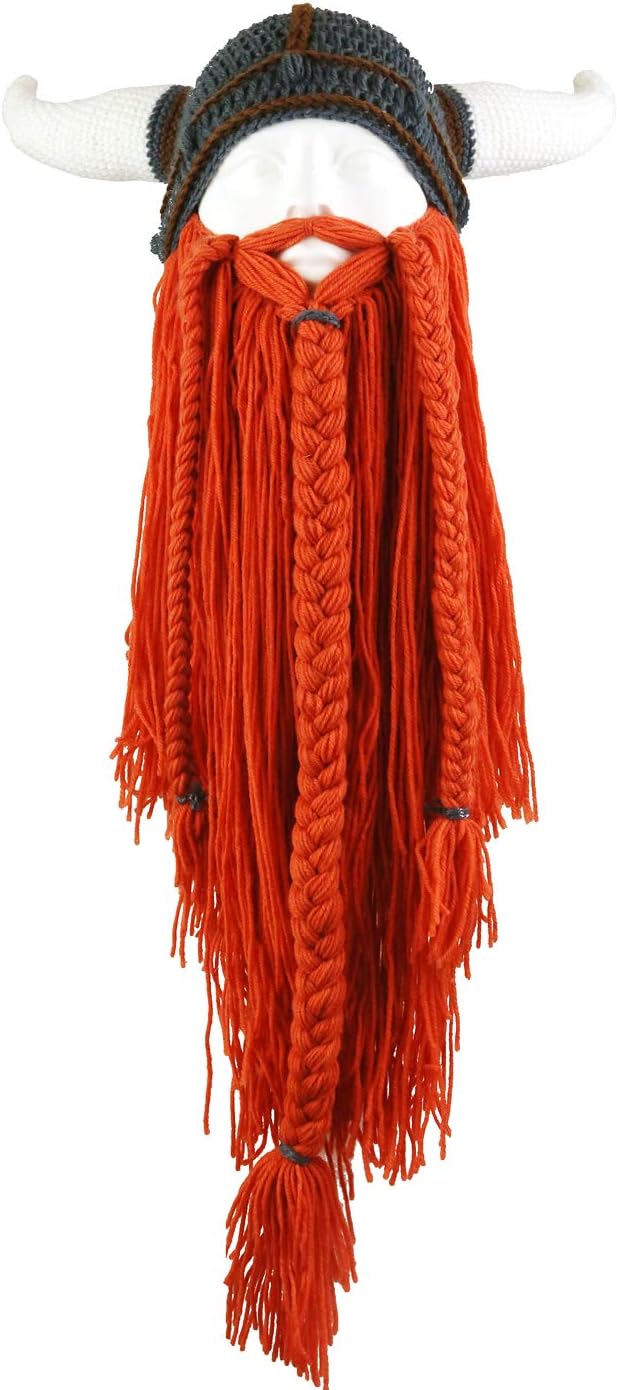 Viking Beard Knitted Hat, Winter Warm Face Mask With Horns, Fun Knitted Hat