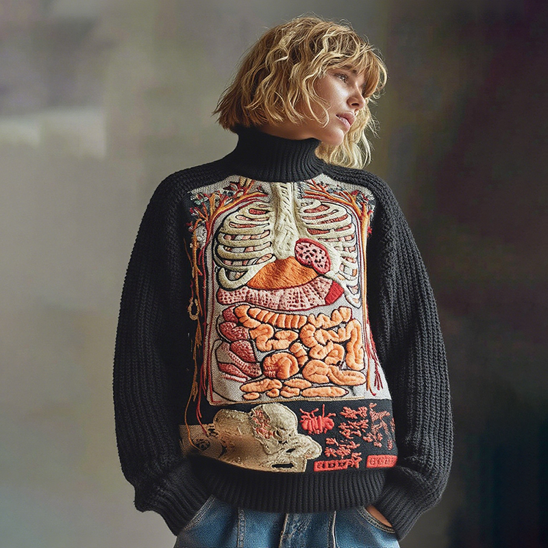 Vintage Halloween Anatomy Art Chunky Knitted Turtleneck Sweater