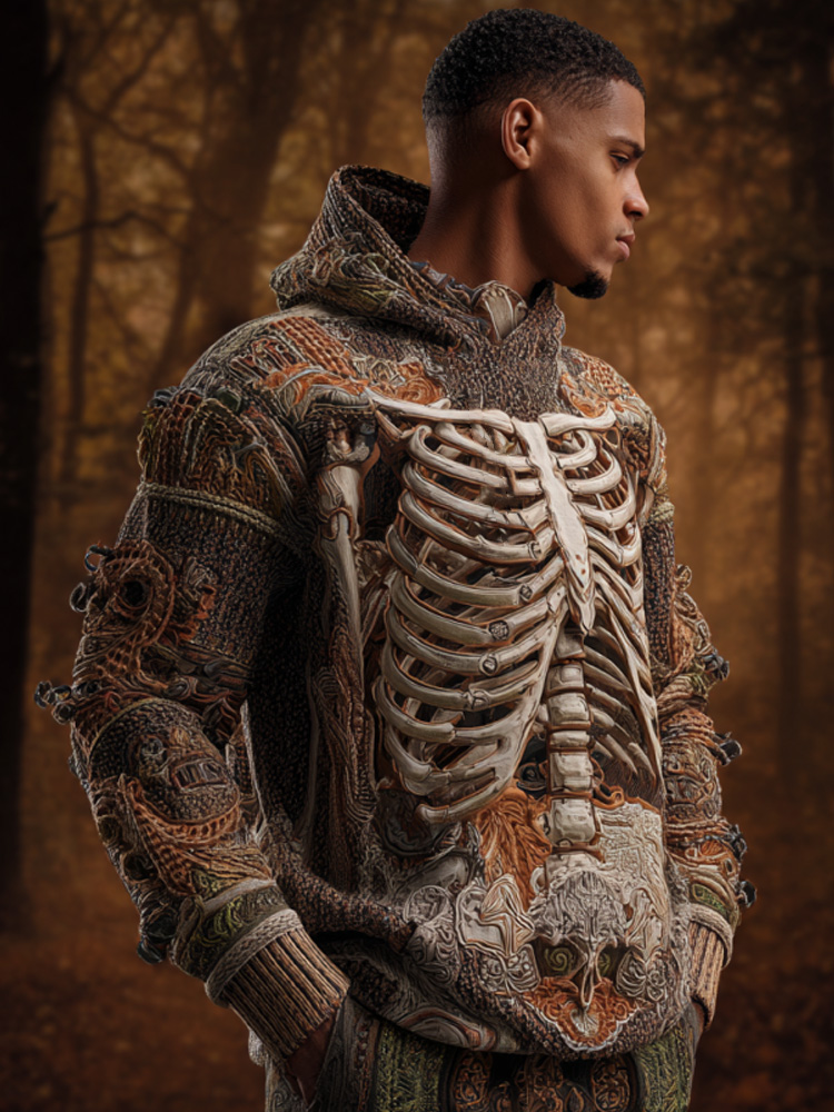 Vintage Halloween Bone And Floral Art Hooded Sweater