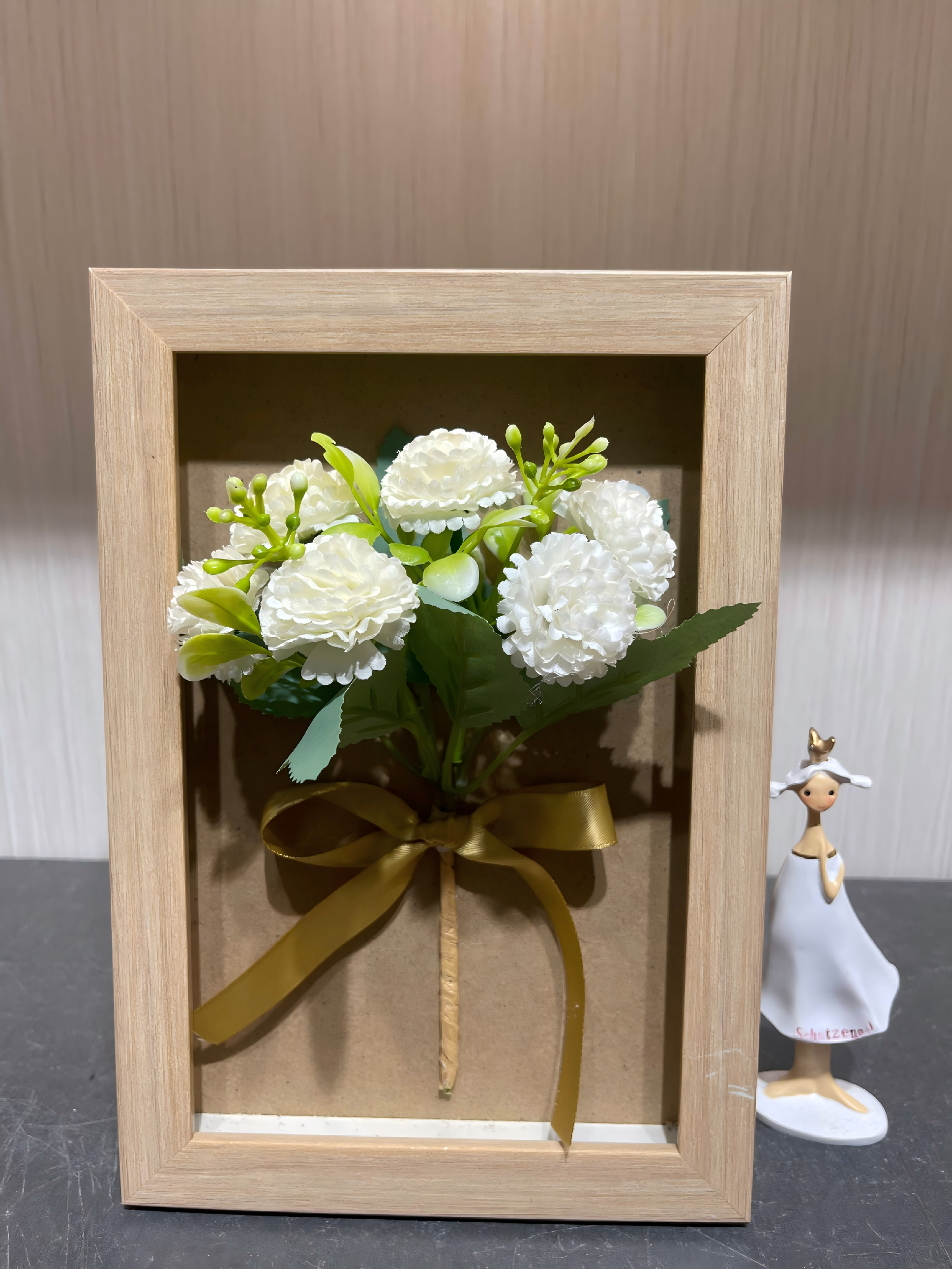 White Carnation Realistic Framed Bouquet (6.7*9.6 in) - Desktop 3D Decor Ornament