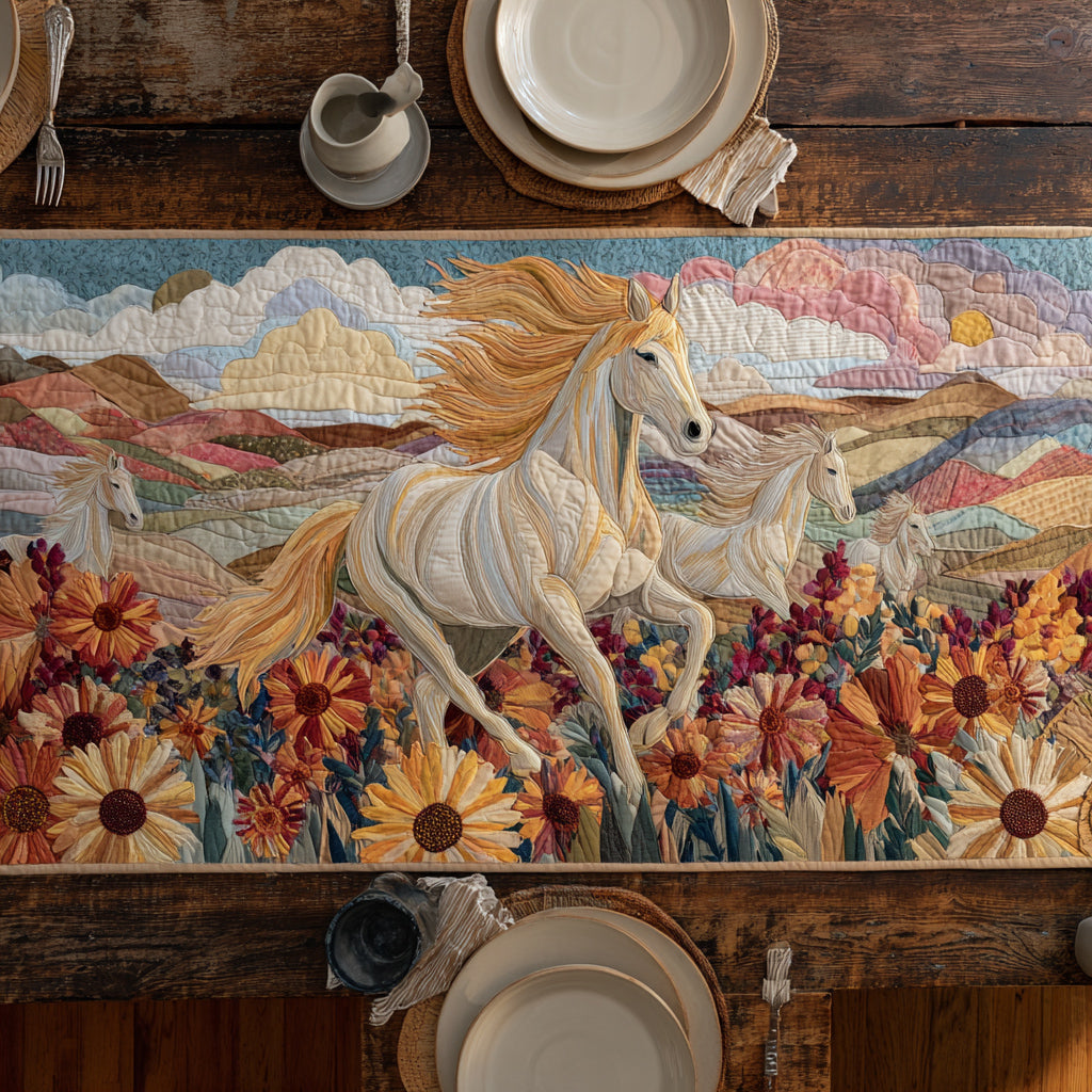 Wild Horse Bloom Quilted Table Runner NCU0HNH474