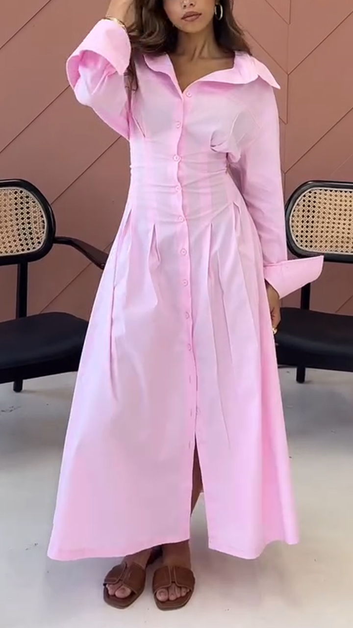 Womens Lapel Solid Color Breasted Casual Dress