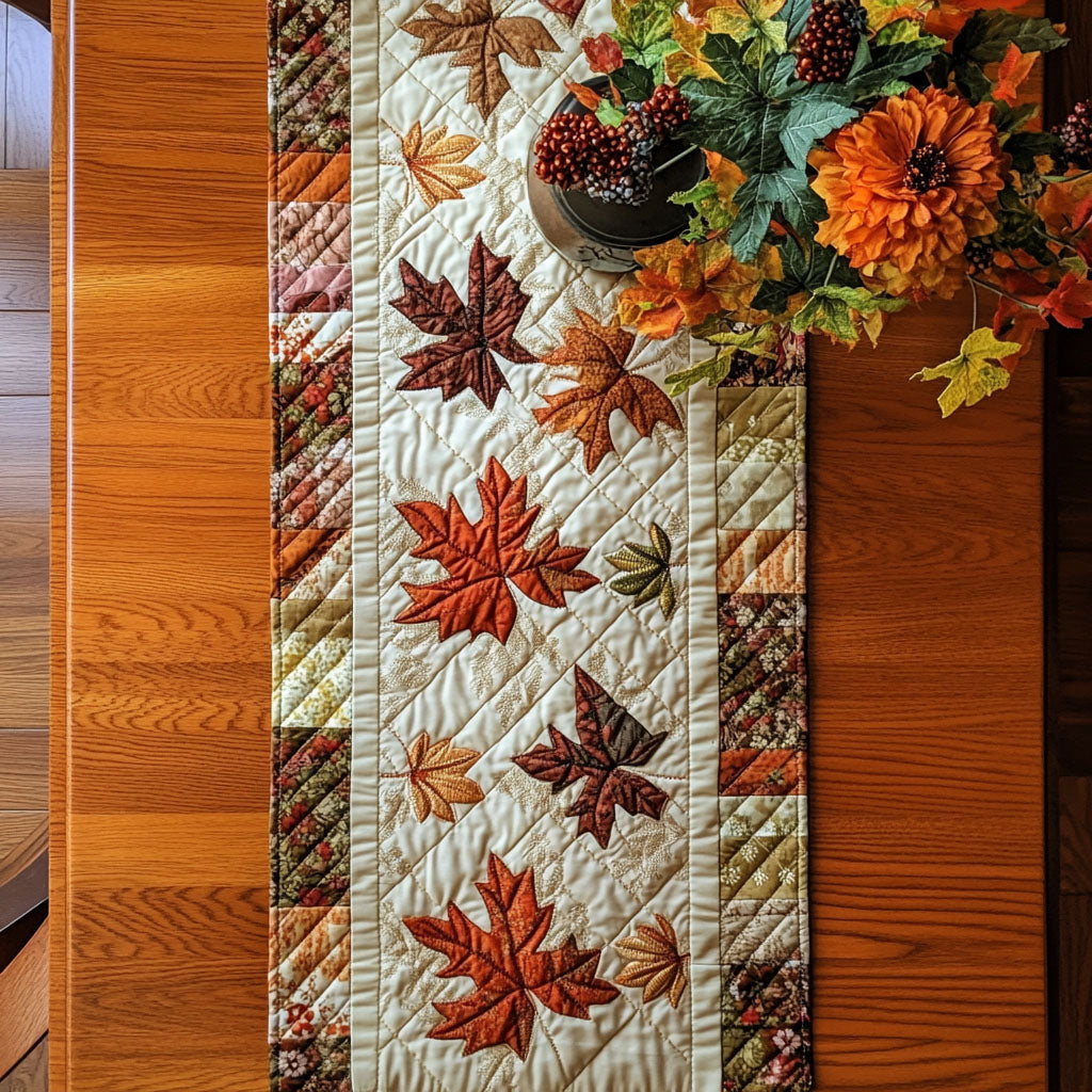 Woodland Leaves Quilted Table Runner NCU0PTT624